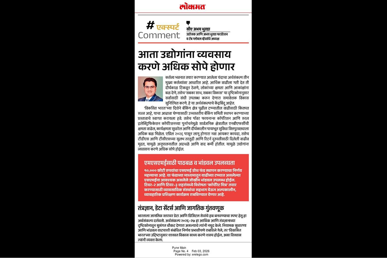 Abhay Bhutada Applauds Union Budget 2025: India’s Future Is Bright
